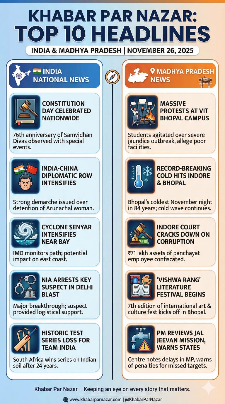 Here is the Top 10 News Round-up for India and Madhya Pradesh, drafted specially for Khabar Par Nazar.