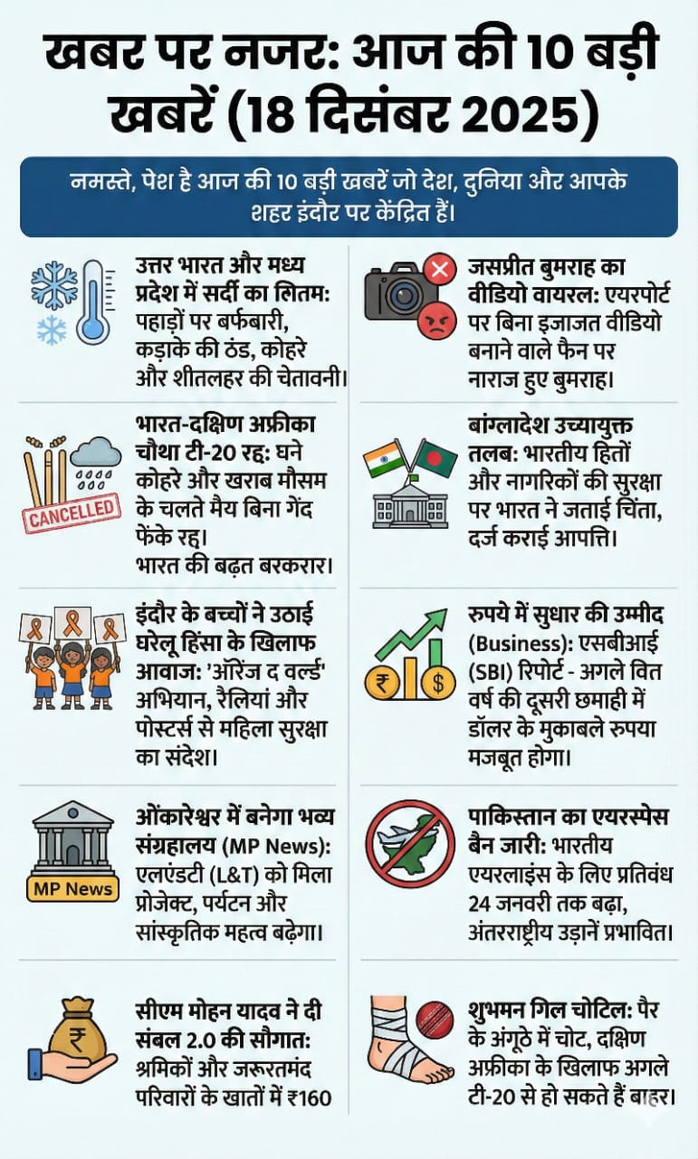 खबर पर नजर: आज की 10 बड़ी खबरें (18 दिसंबर 2025)