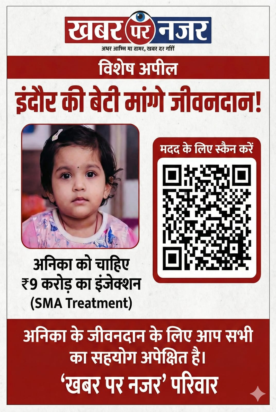 इंदौर की ‘लाड़ली’ अनिका मांगे जीवनदान; 9 करोड़ के टीके के लिए ‘खबर पर नजर’ परिवार की जनता से मार्मिक अपील— ‘आइए, मिलकर बचाएं एक मासूम सांस’