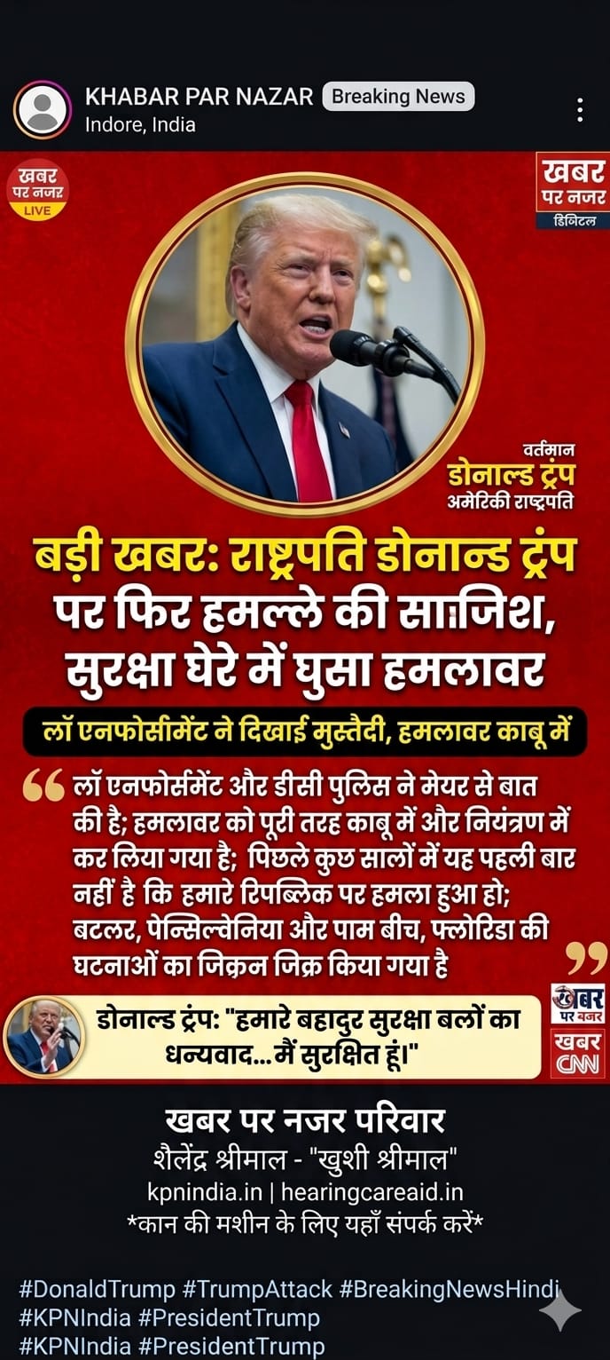 बड़ी खबर: राष्ट्रपति डोनाल्ड ट्रंप पर फिर हमले की साजिश, सुरक्षा घेरे में घुसा हमलावर
